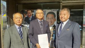 令和7年11月26日(水)三原副会長・金杉税制委員長が、大宮税務署管内に事務所を置く国会議員3人に「令和8年度税制改正に関する提言書」を提出しました。衆議院で予算委員会委員長の枝野幸男議員には、直接提言書を手渡し、要望をお伝えしました。